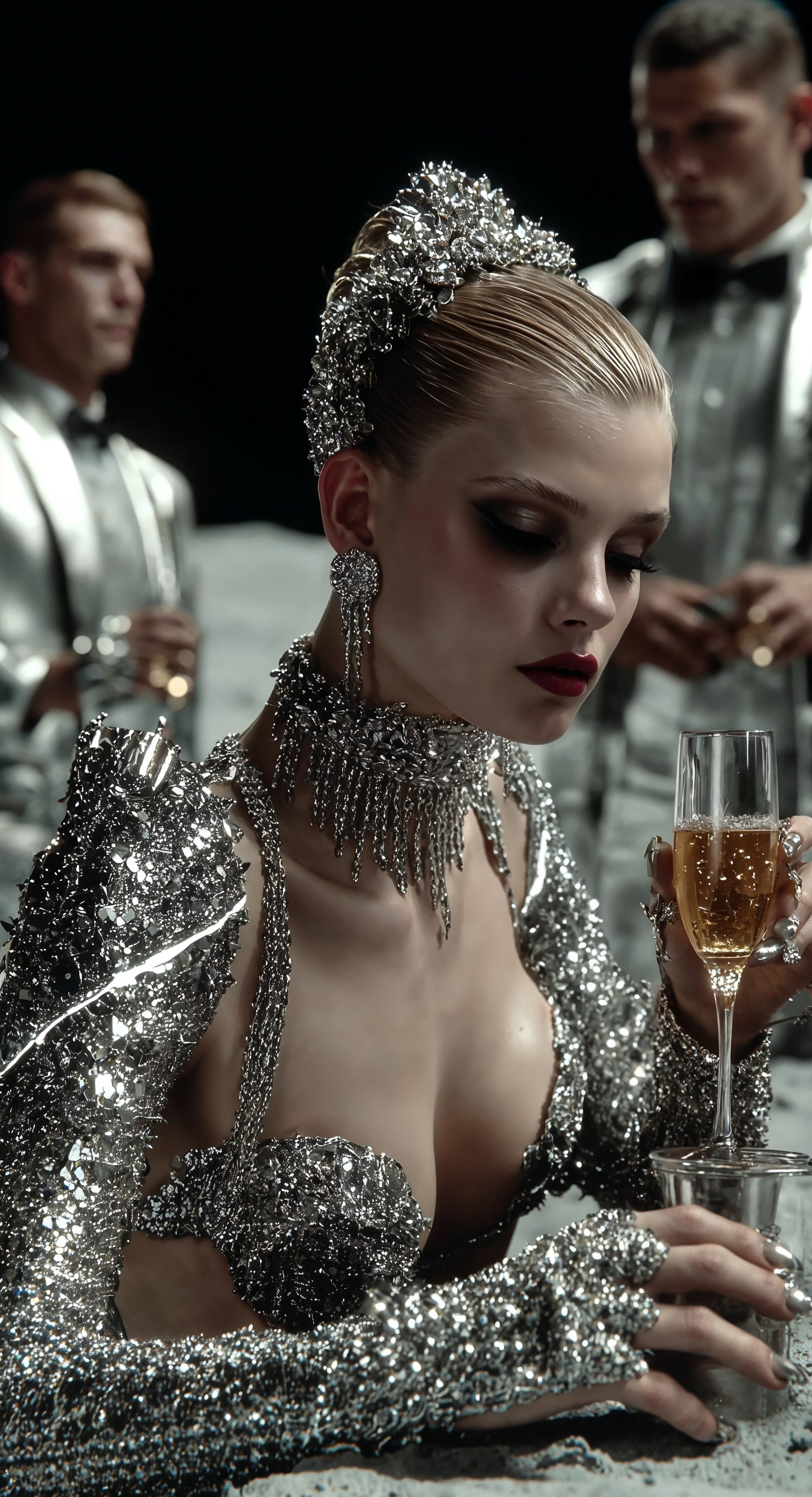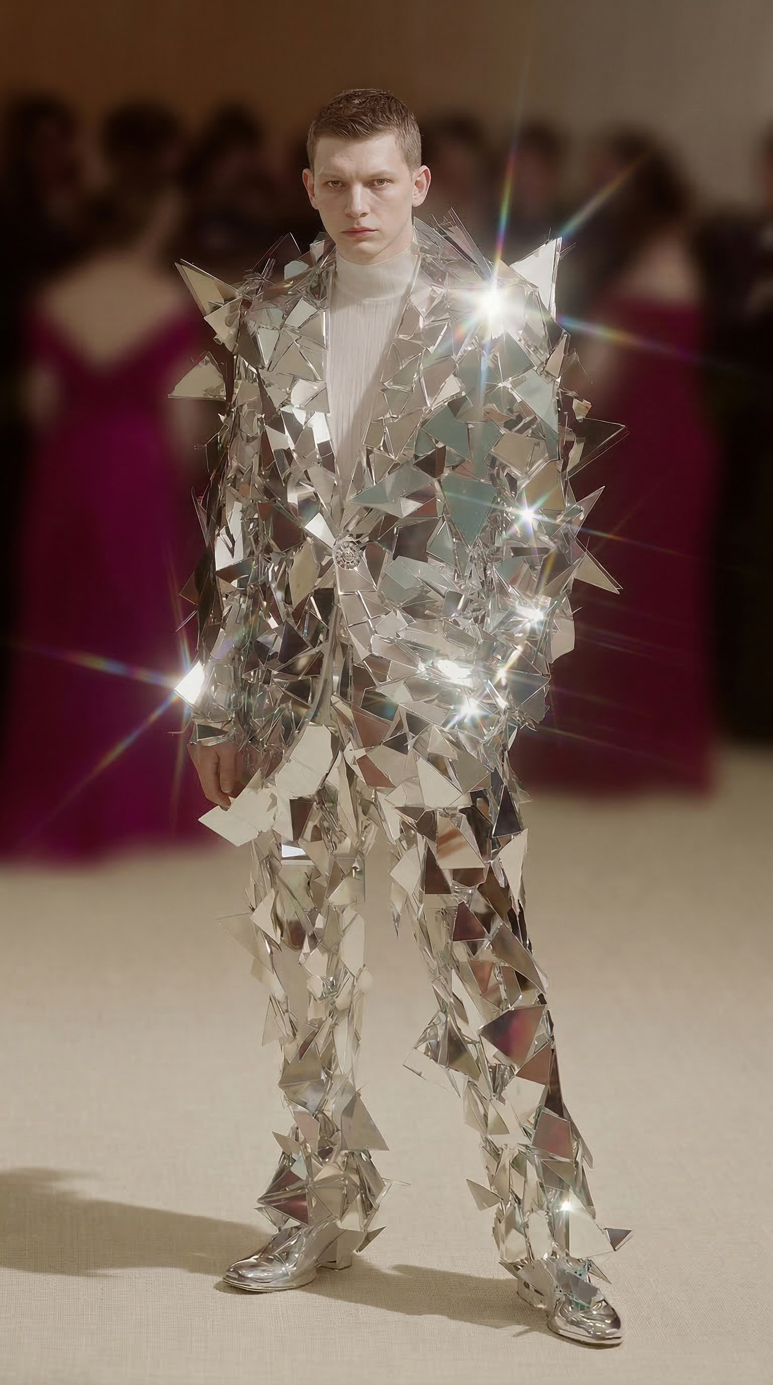 За основу была взята известная картина Кузьмы Петрова-Водкина «Купание красного коня» (красный конь здесь как символ нового 2026 года). Создав консистентную модель было решено одеть её в платье, похожее на кольчугу, символизирующее женщину-воина. И подходящее платье я нашла у бренда Dolce& Gabbana.